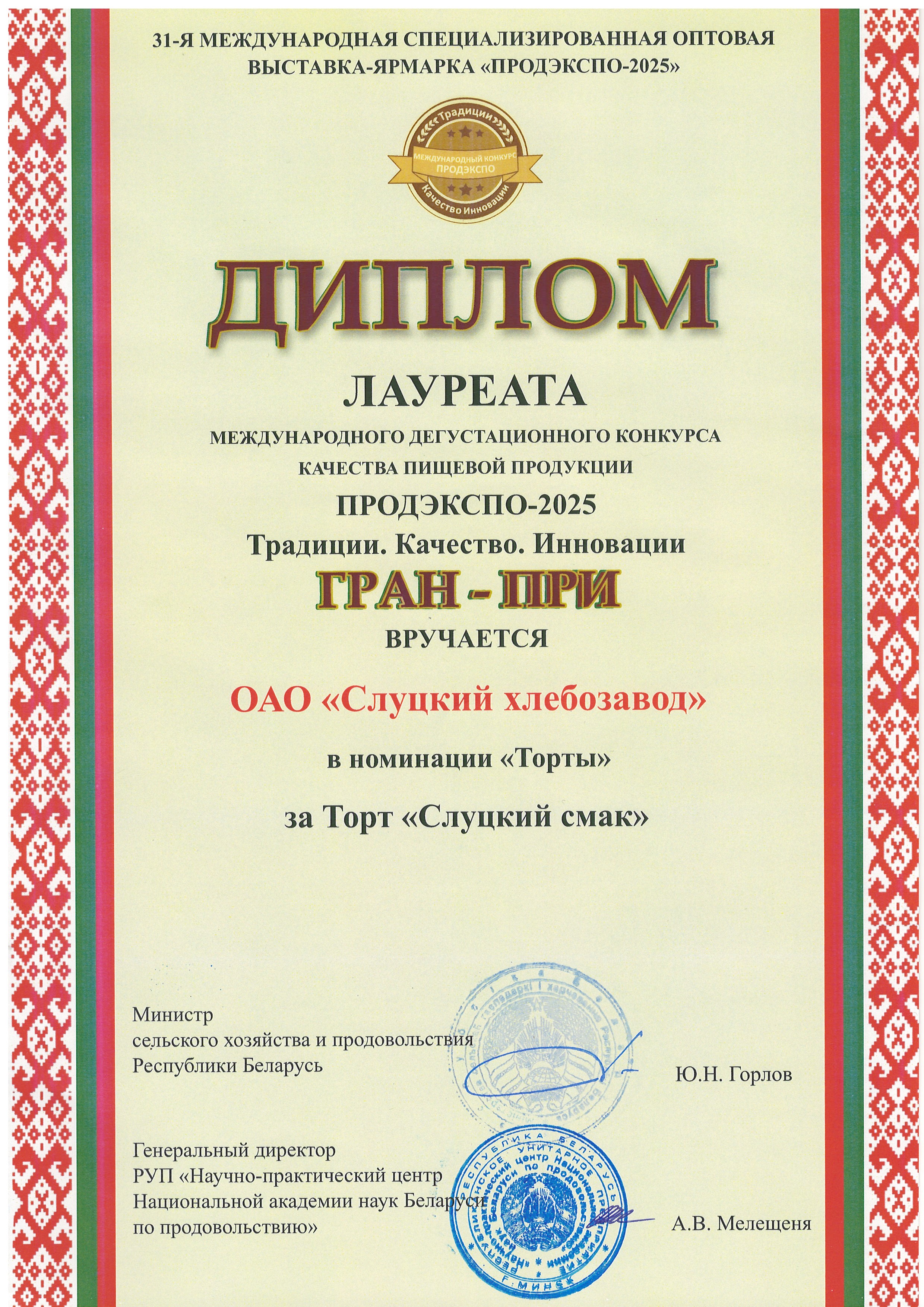 ОАО «Слуцкий хлебозавод» - торговая марка «Слуцкi каравай» - это динамично развивающееся предприятие, продукция которого широко известна и любима потребителями.