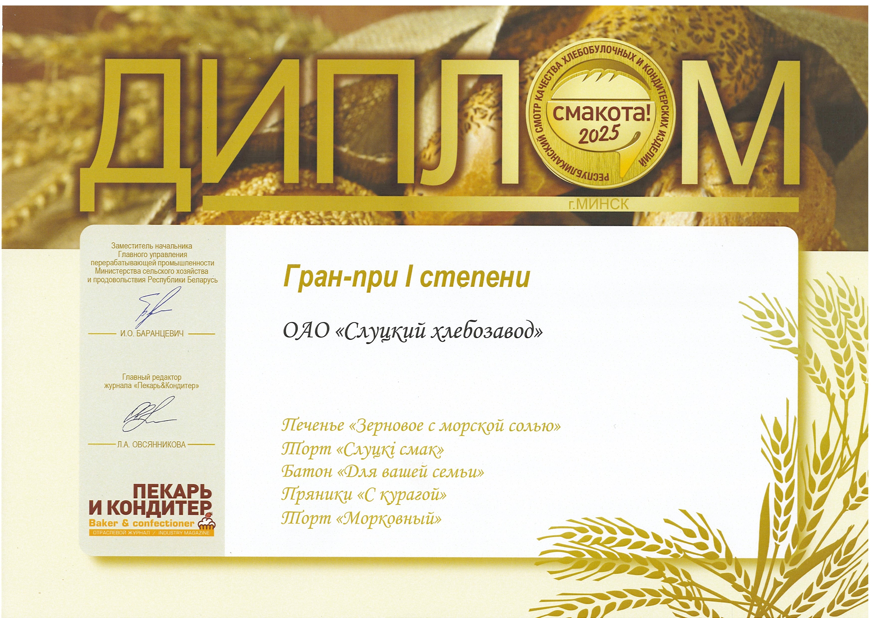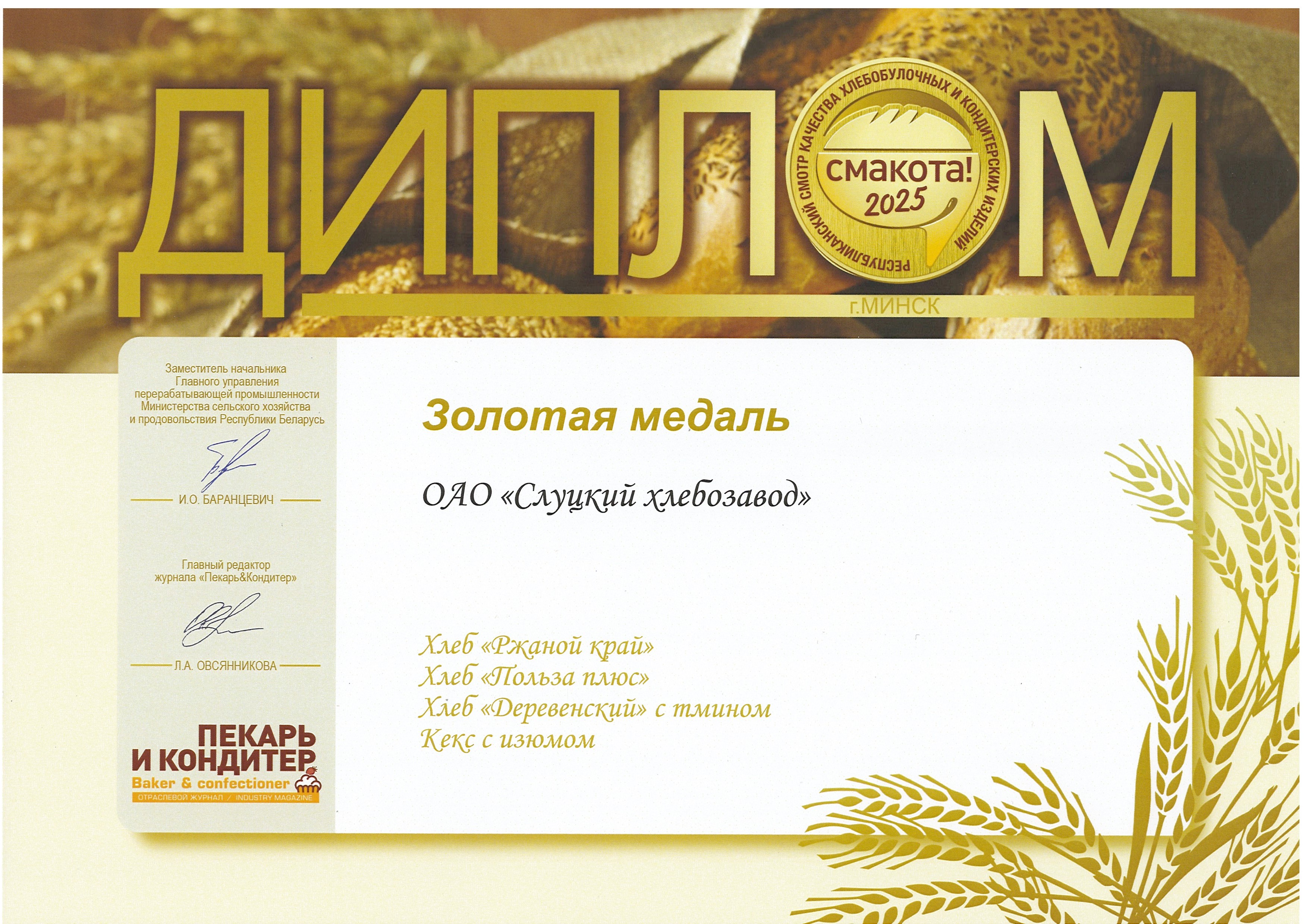 ОАО «Слуцкий хлебозавод» - торговая марка «Слуцкi каравай» - это динамично развивающееся предприятие, продукция которого широко известна и любима потребителями.
